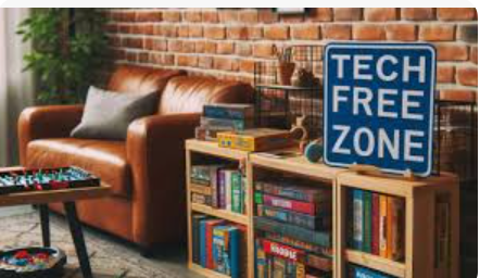 Create a Tech-Free Zone: Designate areas in your home where devices are not allowed (like the dining room or bedroom). Your bed will thank you for not bringing your phone to bed every night.