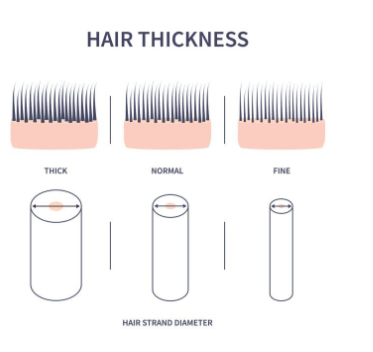 “Density” and “Thickness” are two terms that can often cause confusion when it comes to hair care. Both are important, but they play different roles in the overall health and manageability of your hair. Unlike hair density, hair thickness refers to the width of individual hair strands. It is also known as hair texture and can be categorized into three types: fine, medium, and coarse. Hair thickness is about the width of individual strands, not the number of strands on the scalp.